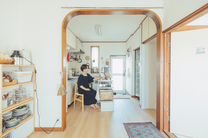 「徒歩30分の悪条件を飲み込んででも住みたい!と思ったきっかけが、台所と部屋との境目にある丸みを帯びたフレームでした。丸すぎず、それでいて柔らかさを感じるところが気に入っています」