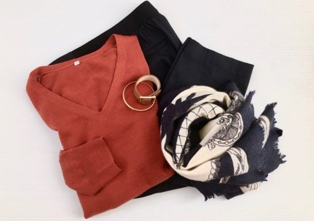 首元にスカーフを巻くだけでも、こなれ感と華やかさがアップしますよ!