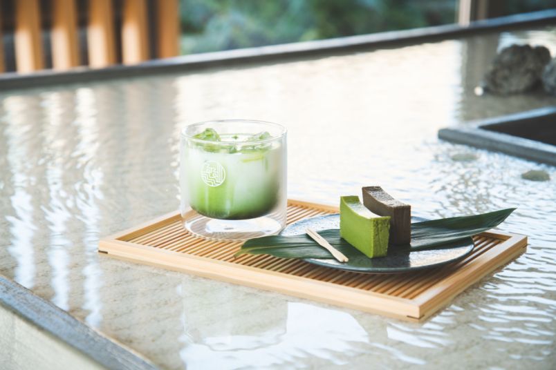 抹茶ラテやほうじ茶ラテは、オーダーが入ってからスタッフの方が点て、ウォーターテーブルの上でミルクに注いでくれます。いれたてのお茶の香りを存分に楽しむことができるのもお店の魅力のひとつです。