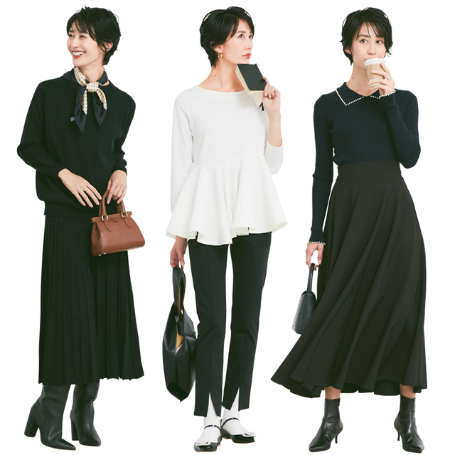 SNSでも話題になっている神戸レタスのセットアップは、ペプラム切り替えのブラウスにスカートとパンツの2タイプから選べるフォーマルセット。女性らしいツイード素材で、低身長さんも合わせやすい丈感です。