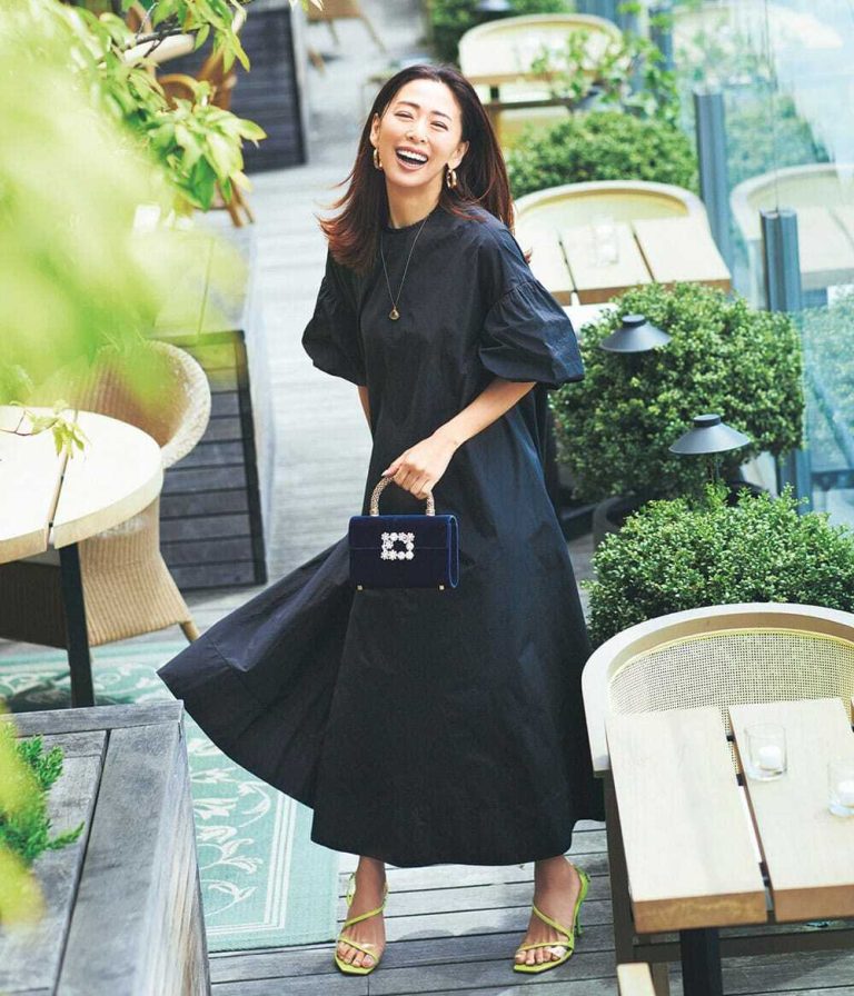 白衿効果でセレモニーにふさわしいフォーマル感を演出できるパフスリーブワンピース。パンプスと合わせやすい丈感で、1枚でスタイリングが完成するのも嬉しいポイント。