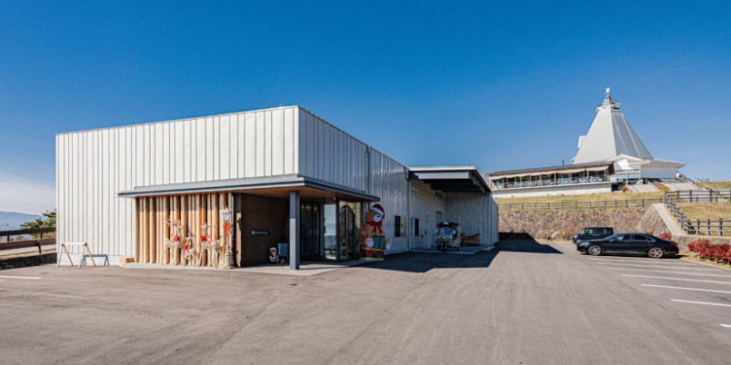 ワイナリー・ショップ棟のデザインは「大地」がテーマ。シーズンごとに変わる飾り付けにも注目です