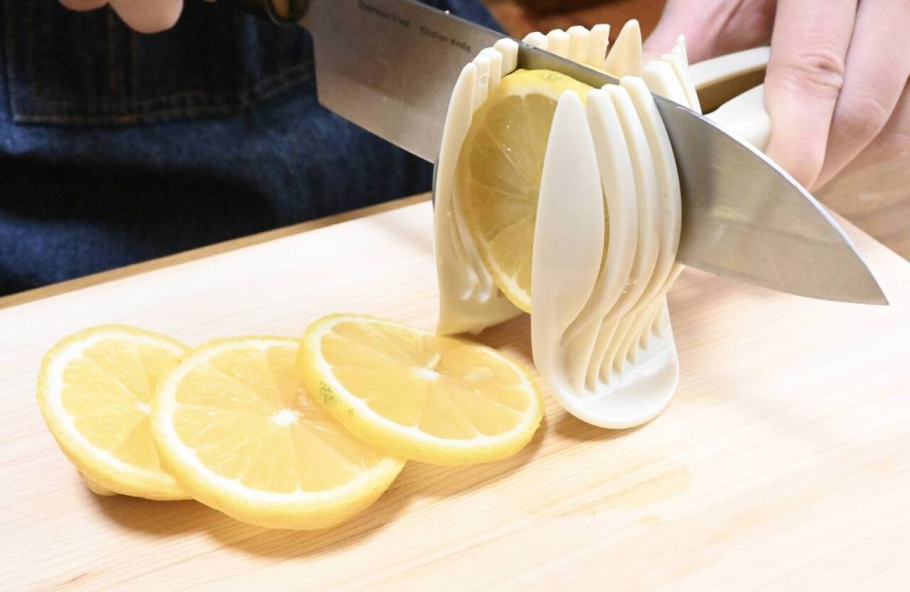 ただ、強い力でカットすると軸が動いてしまうため、軸と軸の間でしっかり切らないと均等になりにくいことも。レモンのように皮が固いものは切りにくさを感じたので、やわらかい食材から試してみてくださいね。