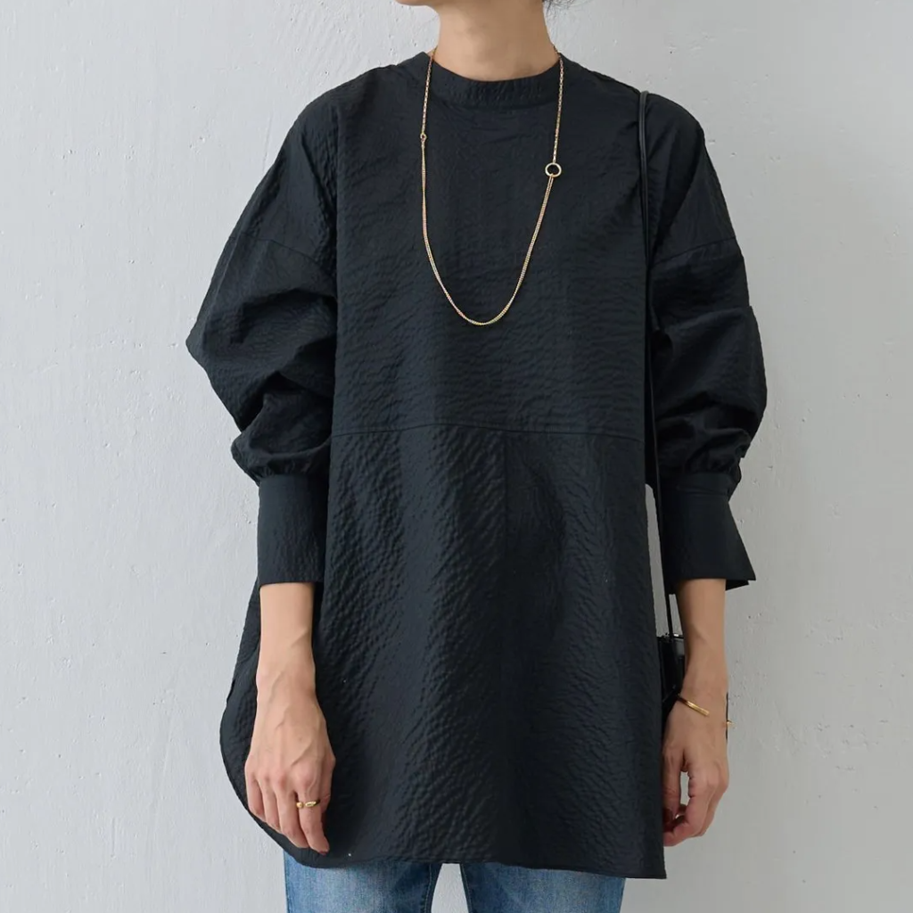 【2024年】40代女性におすすめの普段使いトップス④シャツ衿ボリュームブラウス