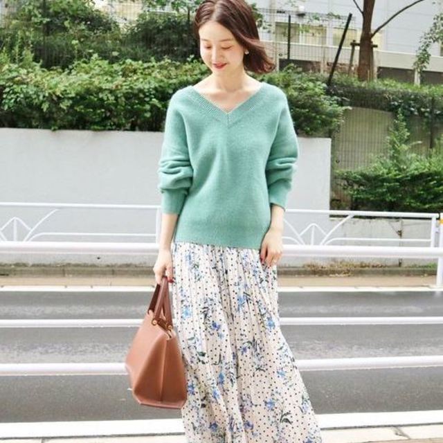春らしい陽気に誘われて、お出かけする時もこのニットがあれば安心ですね。