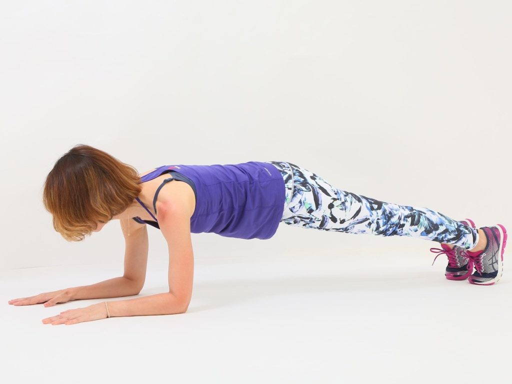 ひじをついた腕立て伏せのようなポーズ。これが体幹トレーニングの基本、プランクポーズです。