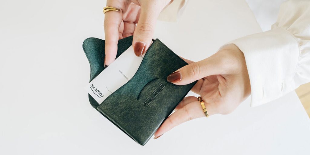 名刺交換の機会が増えたのを機に、テンションが上がる素敵な名刺入れがほしい!と購入した作品です。シンプルながらも、ロゴやステッチなどさりげないデザイン性が光るこちらのアイテムにひと目惚れしました。