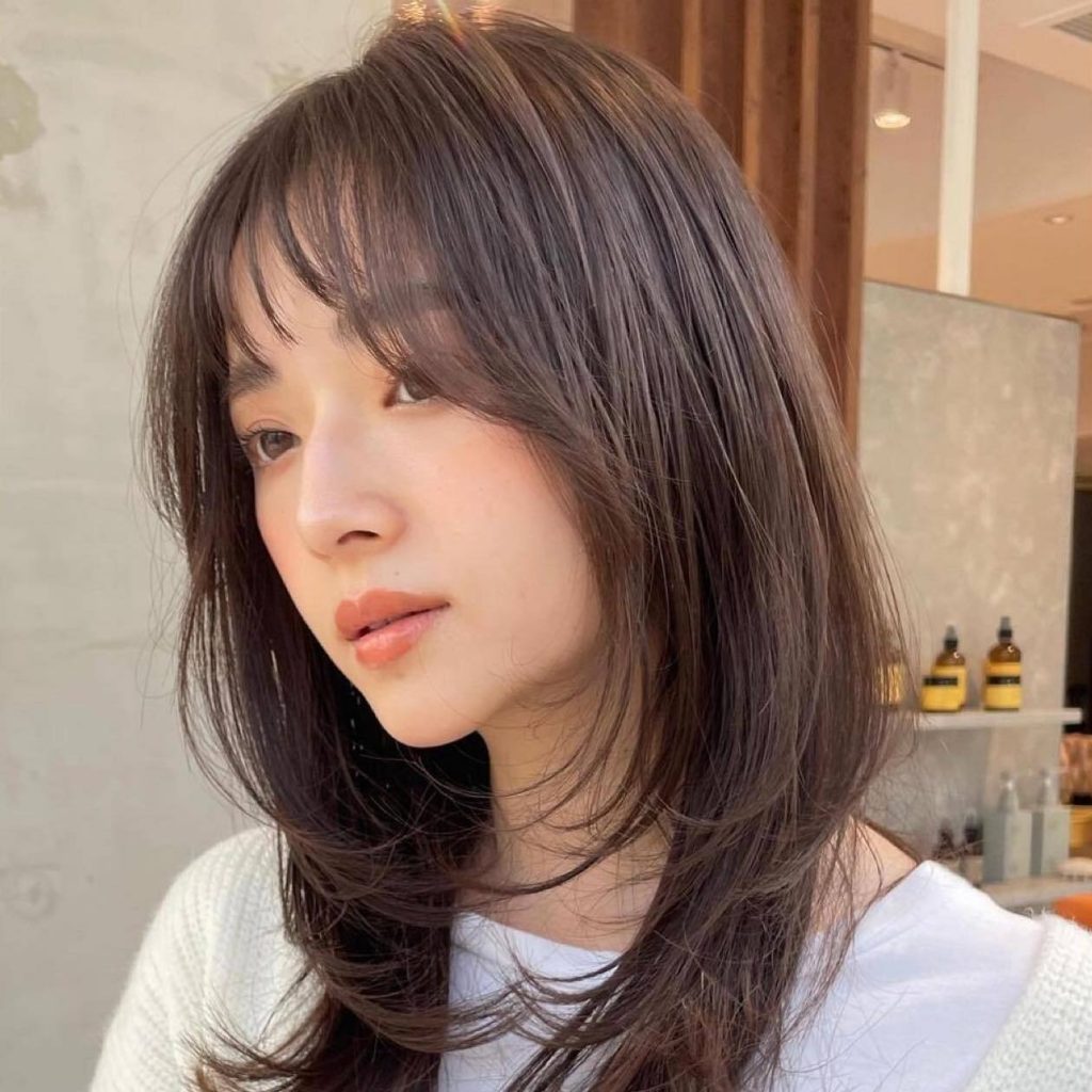 さらに、前髪を作る際は透け感を出すことを意識すれば、さり気なく旬を抑えたスタイルに。なお、スタイリングは無造作にアイロンでワンカール内巻きにして、仕上げにヘアオイルでしっとり感をプラスするだけでOKです。