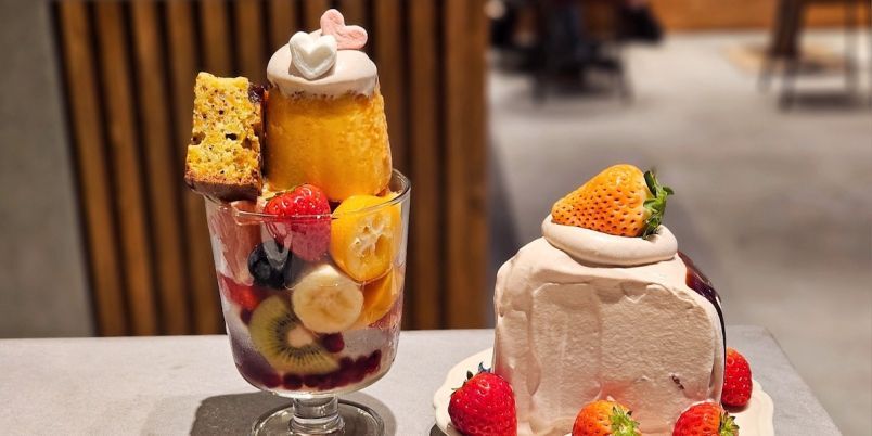 季節により変わりますが、たっぷりのフルーツとプリンがのるビジュアルが毎回SNSで話題になるメニューです。