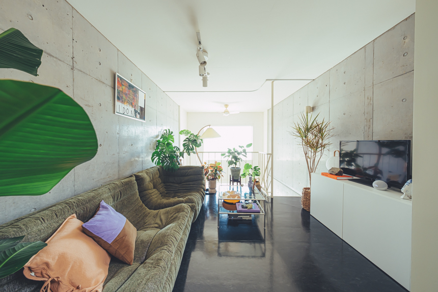 「通勤しやすい立地をいくつか候補に上げて、家賃や間取りの希望に沿う物件を複数のサイトで検索しました。4面採光で陽当たりが良く、希望していたルーフバルコニーも付いていて一目で気に入りましたね。2DKの間取りも二人暮らししやすく、憧れていたデザイナーズ物件で打ちっぱなしのコンクリートの壁や、真っ黒な床などの内装も好みでした」