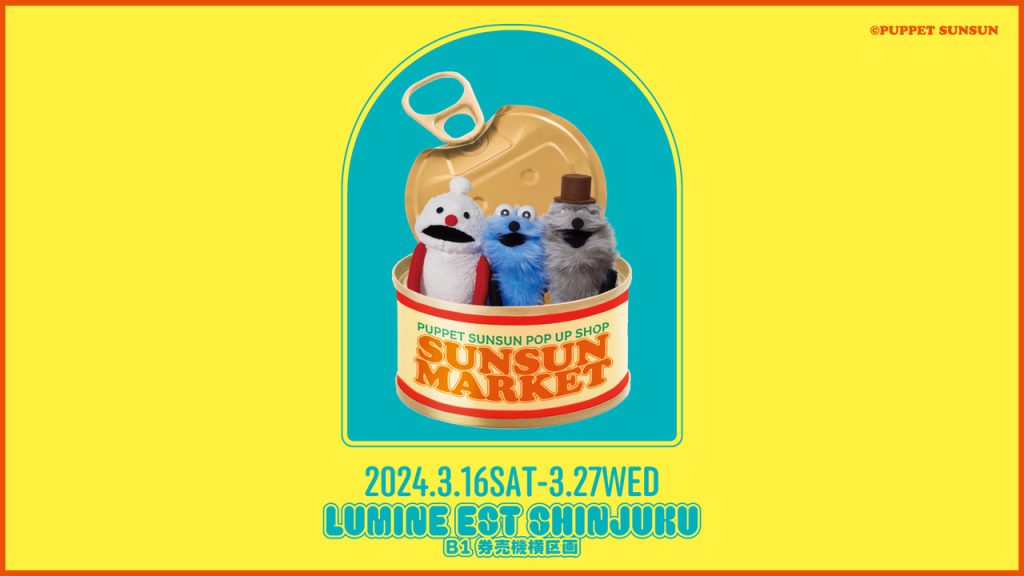 パペットの国〈トゥーホック〉に住むキャラクター・パペットスンスンの期間限定ポップアップ「SUNSUN MARKET」をが、3月16日から「ルミネエスト新宿」のB1新宿駅中央東改札外券売機横で開催されます!