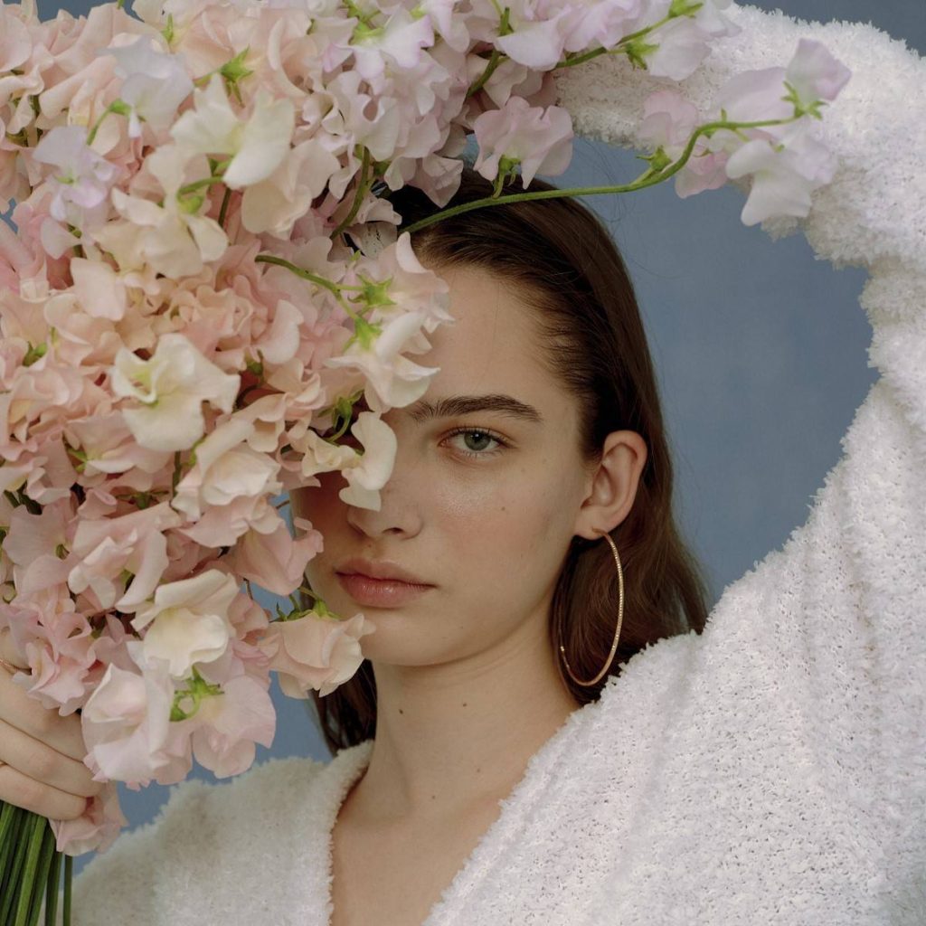 一面が桜の花びらでいっぱいになった様子を表したというペーパーヤーンのニットカーディガンは、軽くてさらりとした着心地が魅力♡