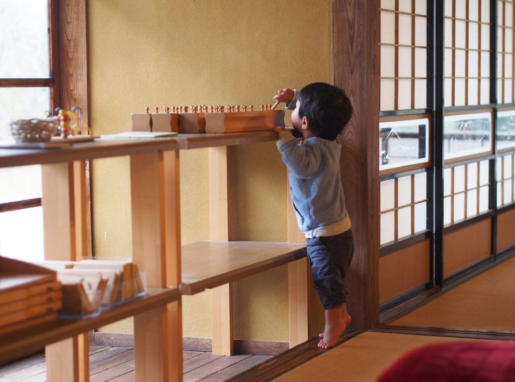 紐を使う手づくりのおもちゃ。モンテッソーリ教育を取り入れている