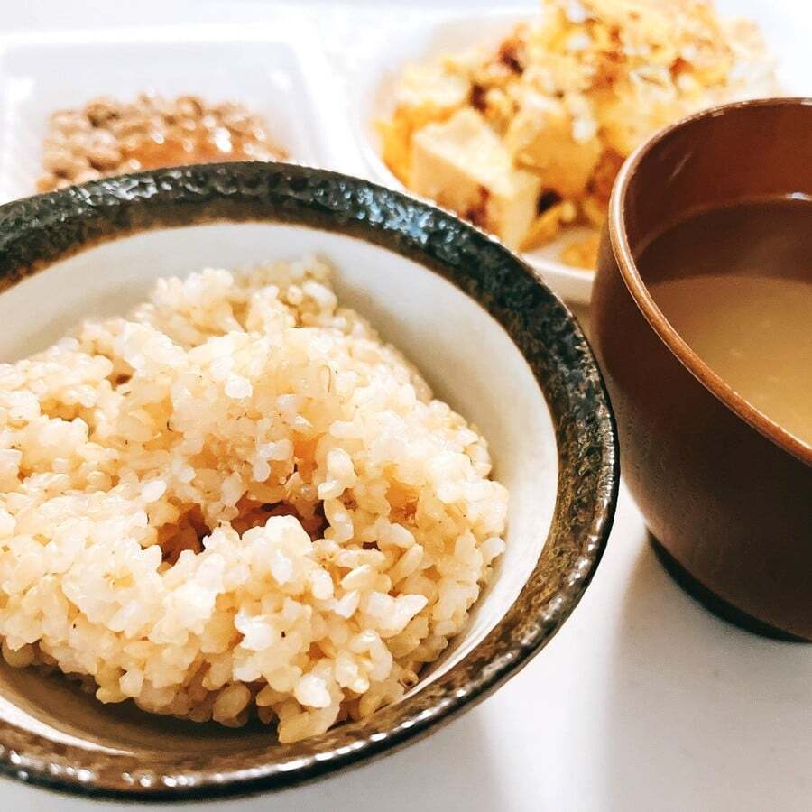 主食は腸活を意識して玄米を、おかずは家にあるもので簡単につくれるメニューを用意します。