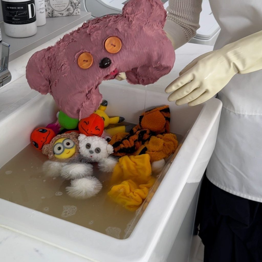 テーマパークが大好きなスタッフがいるので、彼女の持っているカチューシャ・ヘアバンド・被り物をつけ置き洗いしました。