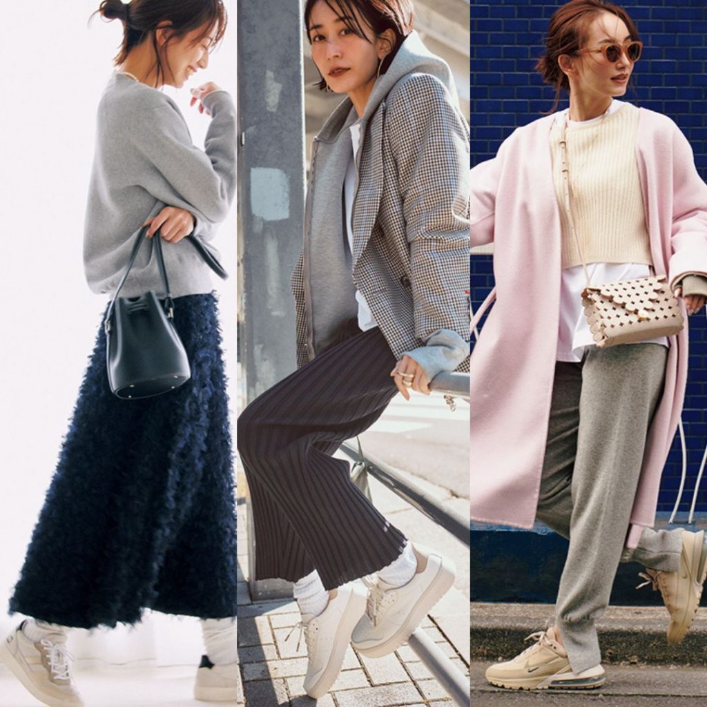 キレイめの通勤コーデには 白スニーカーよりベージュがマッチ! 全身モノトーンでもクールすぎない