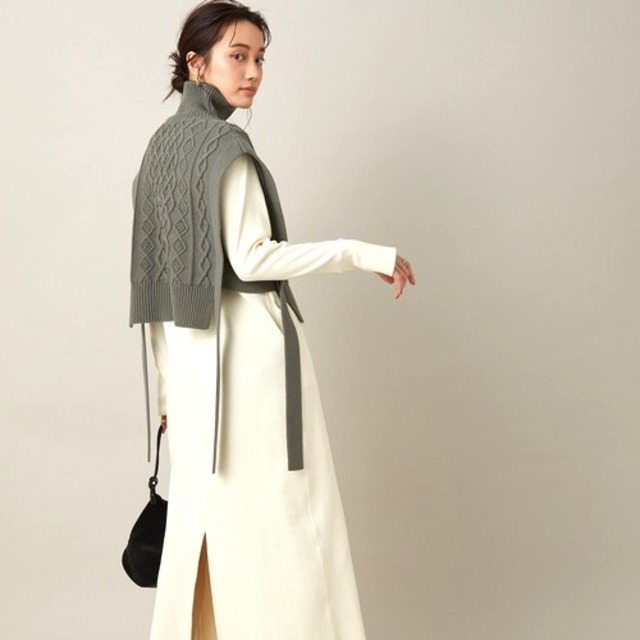 シャツやジャケットを羽織るのも素敵ですが、Vネックのワンピースとレイヤードした時のラインがとてもオシャレ。いつものシンプルなスタイリングがワンランク格上げした旬顔コーデにアップデートしますね。