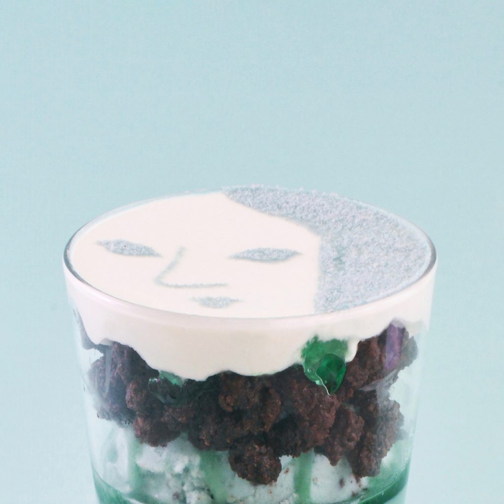 通常の約50倍のハッカ油を使用したパフェは、ひとくち目から異次元級の清涼感が口の中に広がります。生クリームやチョコミントアイス、ミントゼリーが何層にも重なり、最後まで飽きずに味わうことができます。