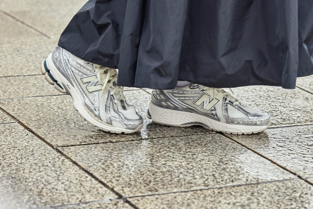 今年っぽいメタリックハイテクスニーカーで甘辛コーデを更新