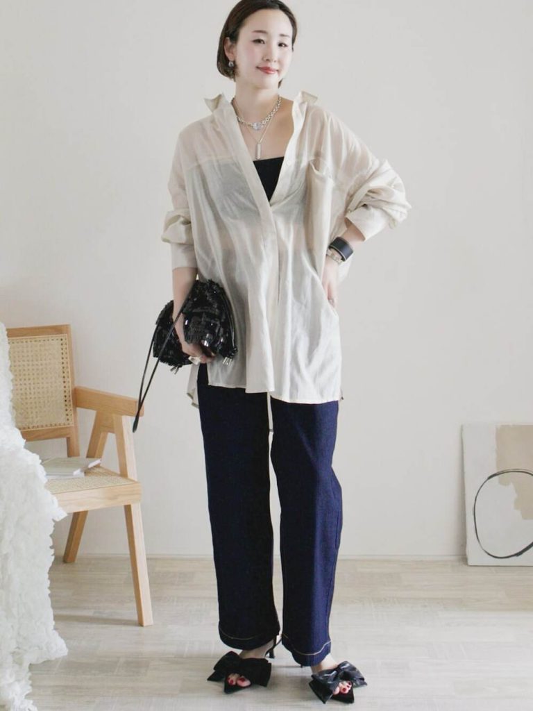 今年はトレンドのシアーシャツを取り入れて、こなれコーデを目指しましょう。