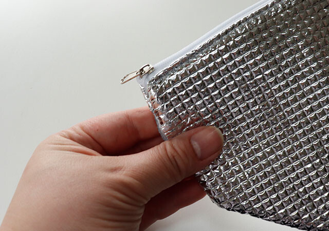 上や側面から見ると少し厚みがあり、使うときはパカッと矢印の方向に開くだけでクロス状の立体的な形に。
