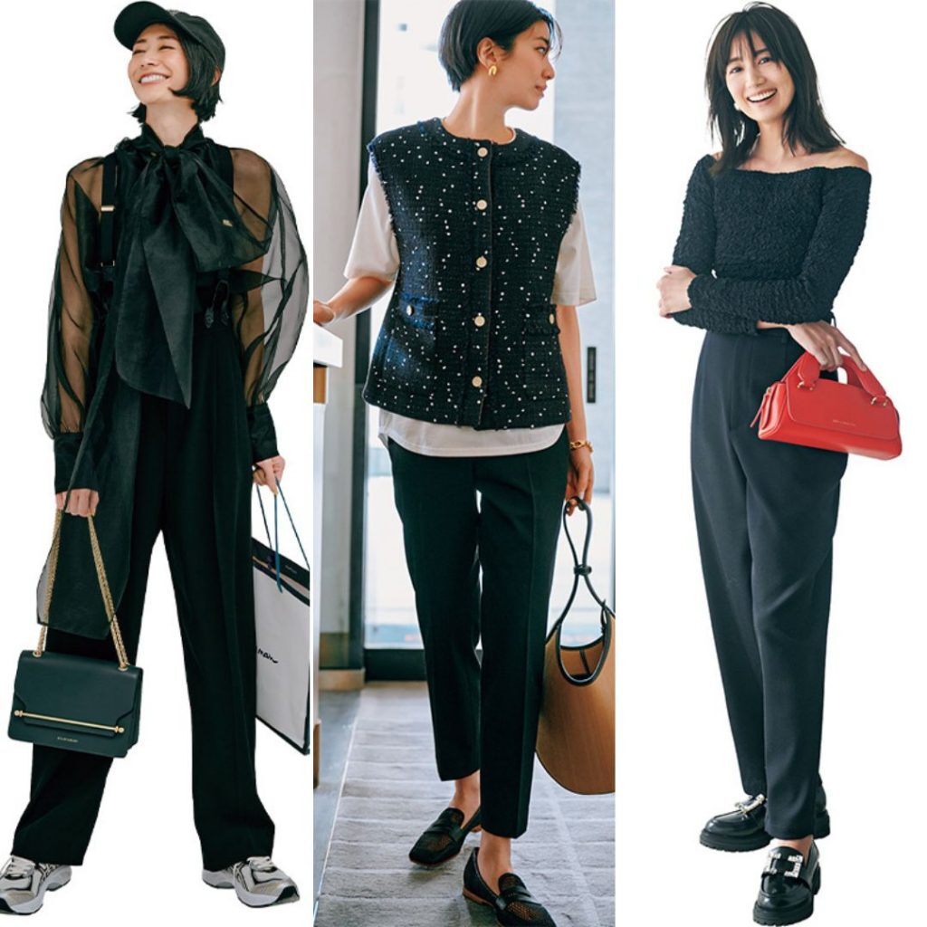 から、季節や気分に合ったスタイルをまとめてお届けしています。今週は「黒パンツ」をピックアップ。雨の日こそ、気分がUPするオシャレを楽しみたいですよね。雨の跳ね返りを気にしづらい黒パンツは、華やかなトップスとのバランス◎。最旬コーデ7選をご紹介します。