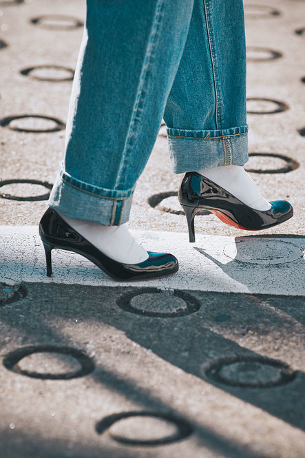 ⑪ブルーシャツ×スポーティー小物で爽やかに