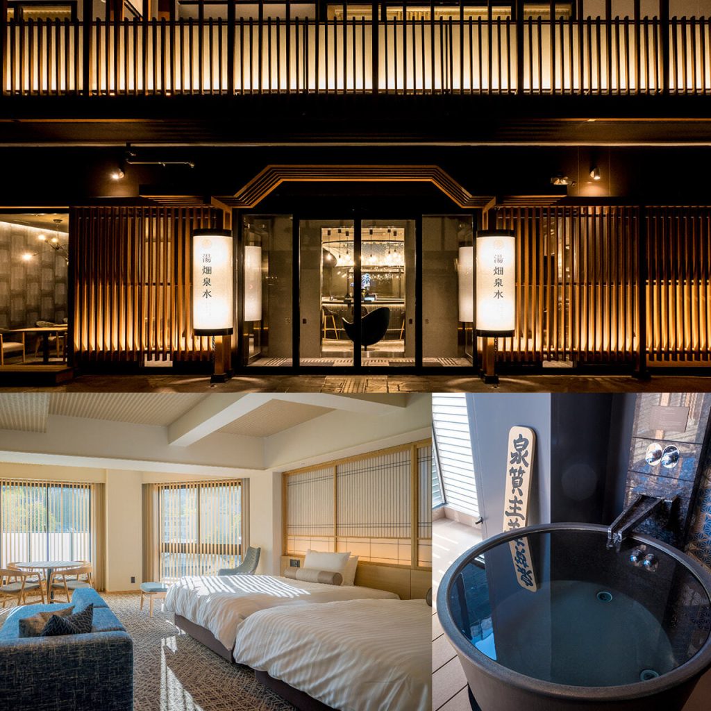 《草津温泉》全客室に温泉露天風呂付き。2024年春オープンのモダン宿[湯畑泉水]