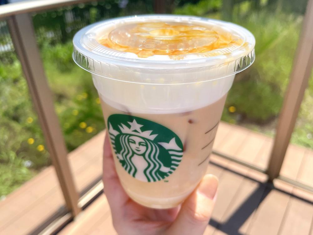 「まじおいしすぎた」「過去1好き」「飛んだ」と絶賛されているカスタムが、アーモンドミルク変更(持ち帰り価格54円)、ムースフォーム追加(持ち帰り価格54円)、キャラメルソース追加(無料)。合計金額はトールサイズで648円です。