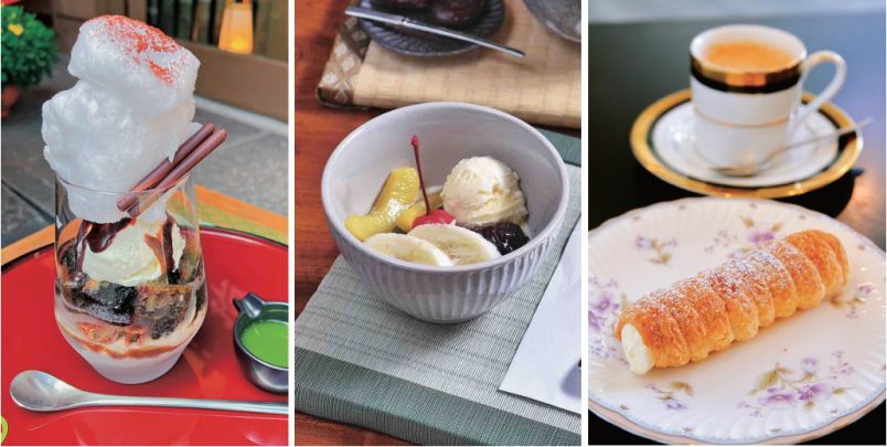 「抹茶あんみつ 」600円、「カフェラテ」 650円