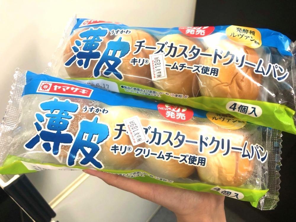 山崎製パンの新商品、「薄皮チーズカスタードクリームパン」。