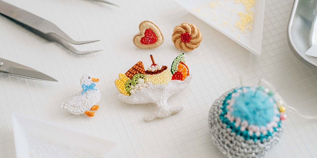 始めはビーズ刺繍ではなく、ビーズを使った指輪やブレスレットなどのアクセサリーを制作・販売していました。でも、手元のカラフルなビーズを見ているともっといろいろなモチーフの作品をつくってみたいと思うようになり、ビーズ刺繍を始めたんです。