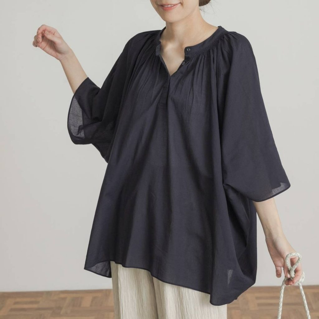 さらっとした着心地で、暑い日も快適におしゃれを楽しめるブラウスです。