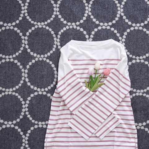 男女兼用のエアリズムコットンTシャツにはボーダー柄もあります。細めのボーダーで柄が主張されすぎず、コーデに取り入れやすいです。ストライプ柄のハーフパンツを合わせれば、真夏らしさ全開に!