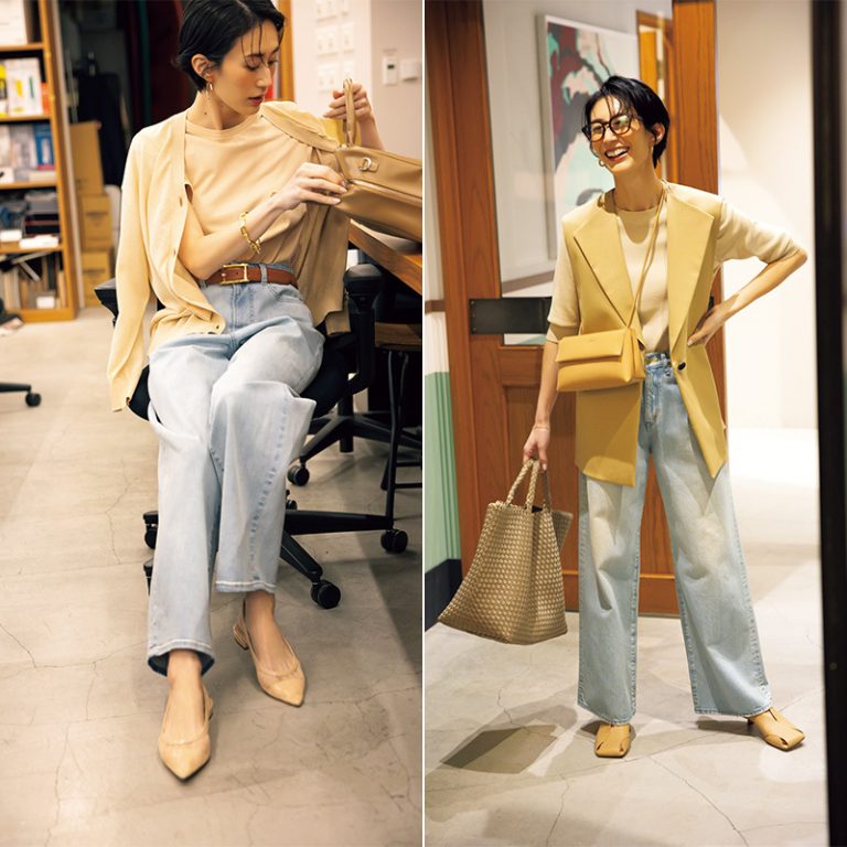 夏にぴったりの軽やかで涼しげなオールインワン。高級感のある素材とリラックス感のあるシルエットが、コーデ全体を大人顔に導きます。