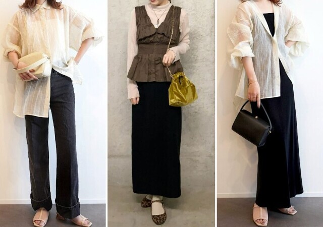 歩くたびに揺れる透け感が女っぽいモノトーンコーデ