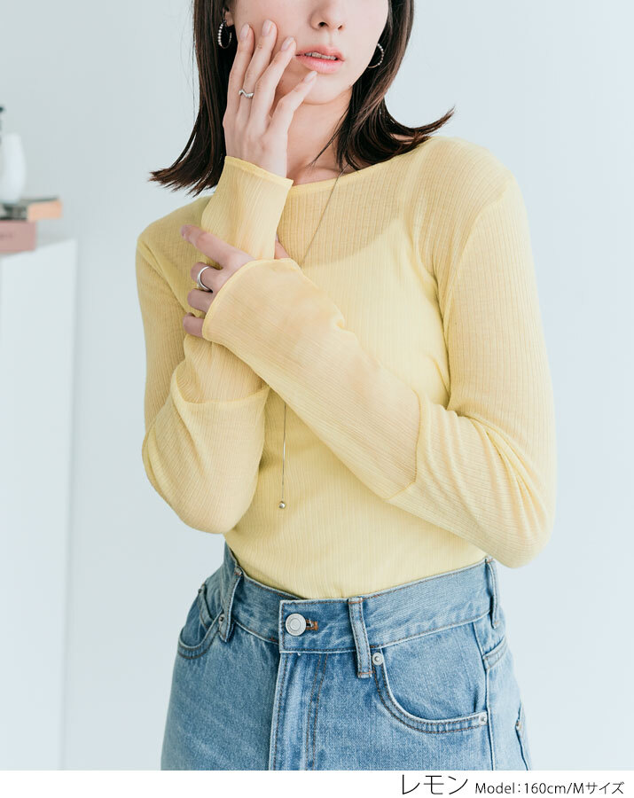 レイヤードコーデを軽やかに楽しめる、ふわりとした透け感が魅力のシアートップス。