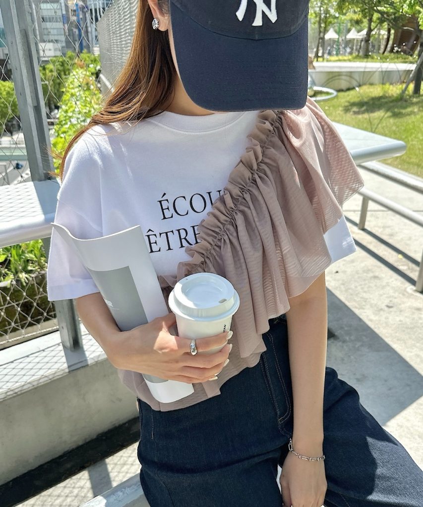 トレンドライクな表情で着こなせる、レイヤード風のTシャツ。ふわりと繊細なチュールが重なることで、ぐっと今っぽいスタイリングが完成します。