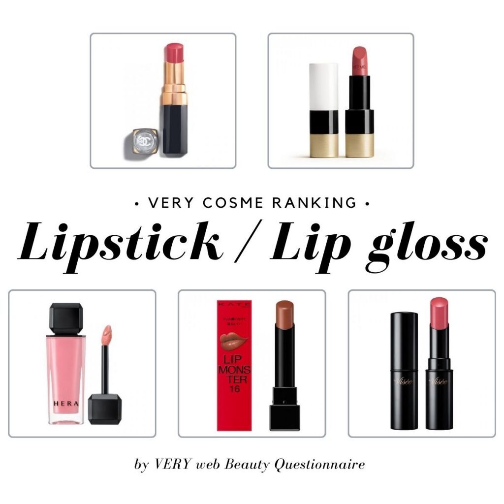 デパコス、プチプラ、韓国コスメ、各カテゴリーからランクインした結果になりました。傾向としては、手軽に塗り直しができるリップスティックタイプの方がVERY読者には人気のようです。また、マットよりもツヤタイプが支持されている傾向に。そして最近発売されたアイテムが多くランクインしており、リップカラーに関しては最新アイテムをファッション感覚で楽しむ人が多いようです。