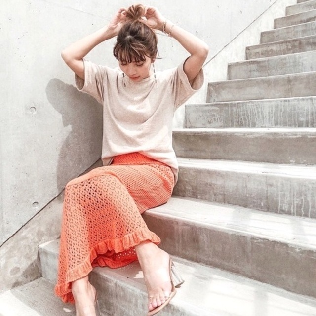爽やかなブルージーンズには、リンガーデザインのブラトップを合わせて、レースニットのワンピースを羽織り代わりにON。透け感のある肌見せが涼しげな、大人コーデの完成です。