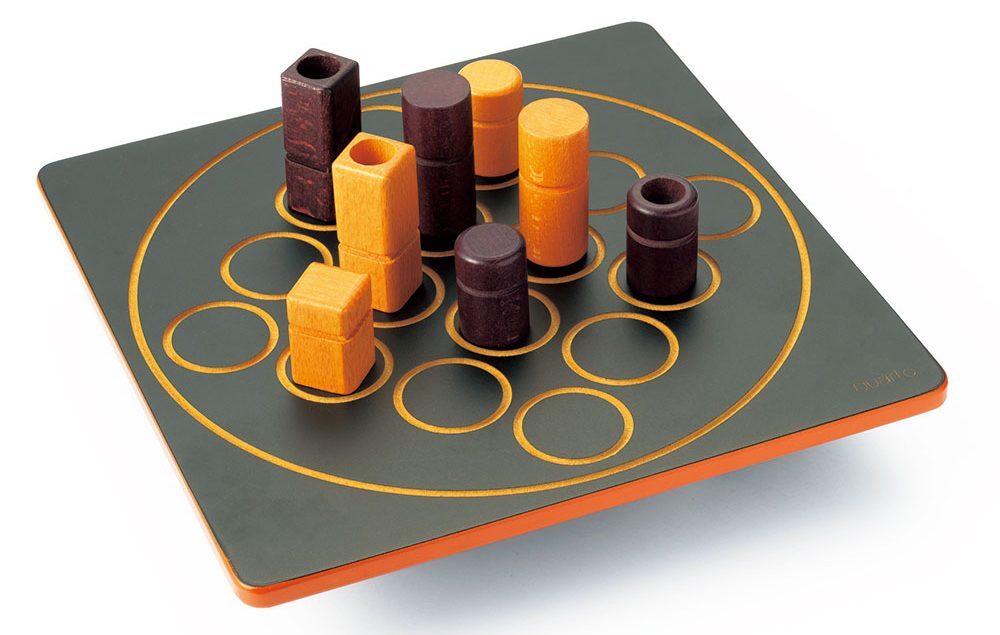 対戦相手と4種のコマを渡し合う、シンプルだけど奥深い四目並べ。