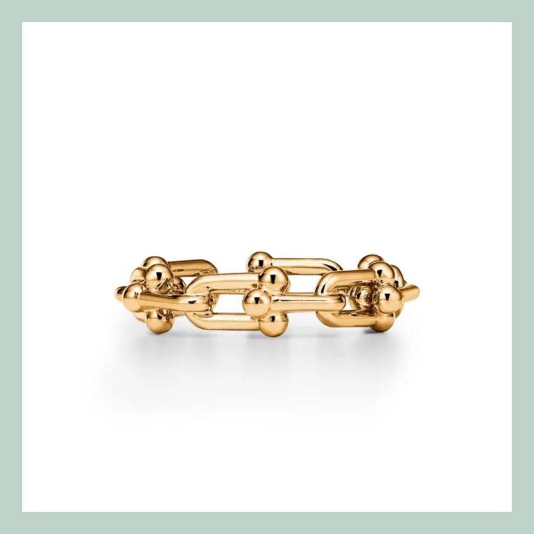 デコルテがきれいに見えるTシャツだからこそ、ボリュームのあるアクセサリーで存在感を漂わせて。また可愛すぎて敬遠しがちなハートモチーフも、ブレスレットなら大人でもさりげなくつけられますよ。