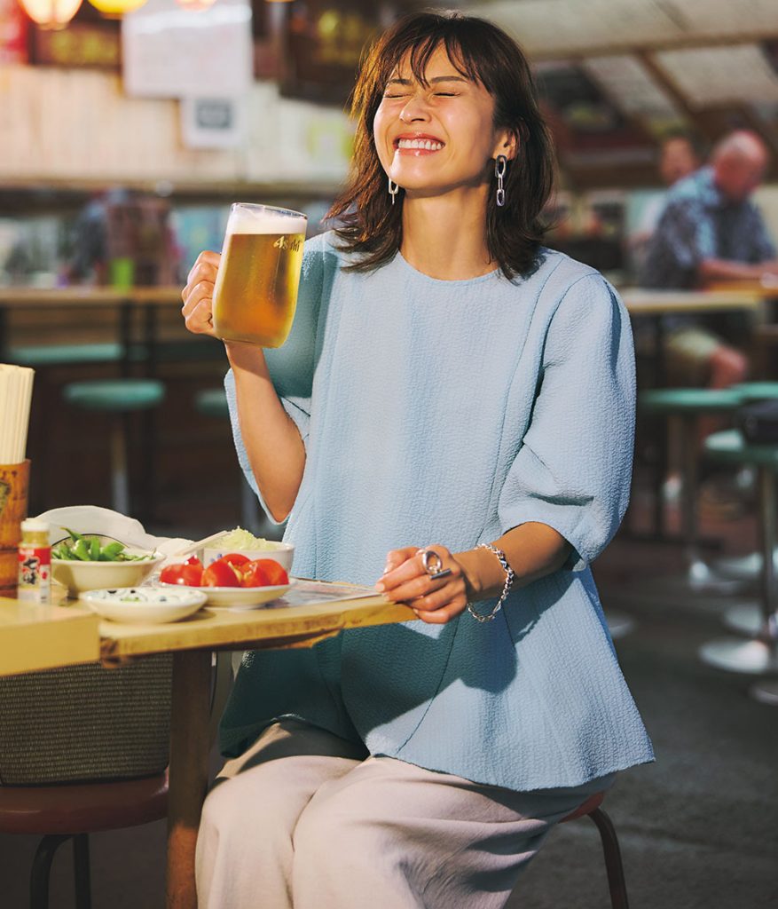 パンツ ¥16,500(N.O.R.C)ブラウス ¥4,950(OPAQUE.CLIP)バッグ ¥8,690(カシュカシュ/アンビリオン)サンダル ¥35,200(ファビオ ルスコーニ/ファビオ ルスコーニ ジェイアール名古屋タカシマヤ店)ピアス ¥11,000ブレスレット ¥23,100(ともにワンエーアールバイウノアエレ/ウノアエレ ジャパン)リング ¥23,320(バルブス/ZUTTOHOLIC)