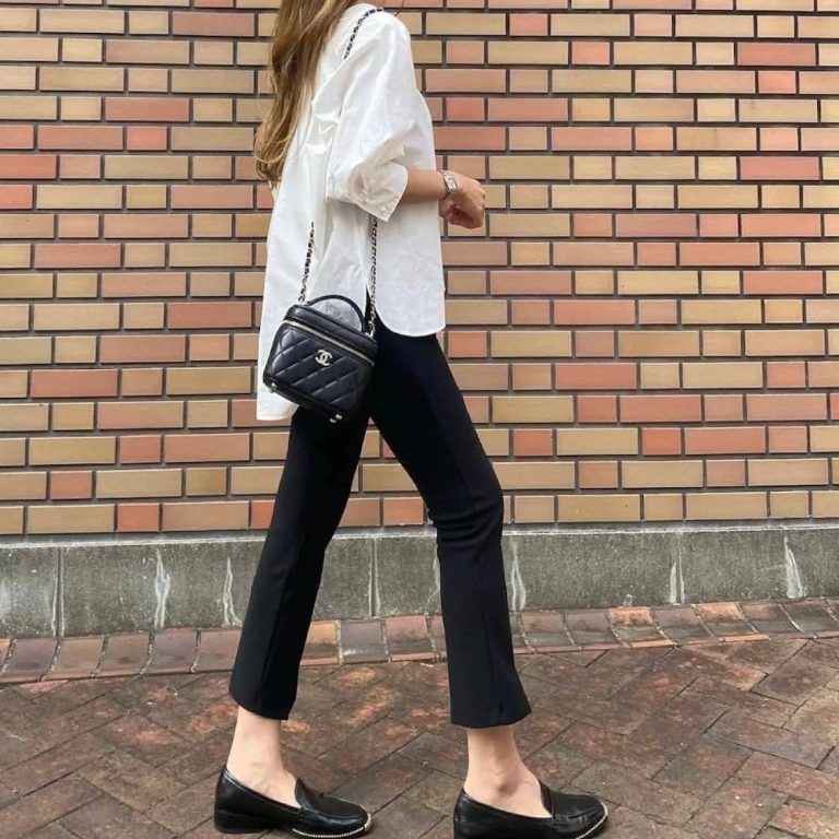 ロゴTシャツ×黒パンツの大人カジュアルなモノトーンコーデ。そこにフリンジデザインのニットベストをONして秋ムード漂う着こなしに。ロゴはパンツと同色で統一してまとまりのある印象を与えます。スポーティでシャープに見せるスニーカーで軽やかな足元に。