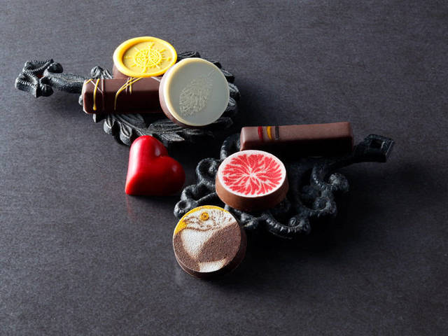 日本庭園を思わせるジャポネハーブ・ショコラ 。高カカオのムースや羊羹など、食感や風味の違いがあるショコラを何層にも重ねています。よもぎの豊かな香りとのマリアージュをお愉しみください。