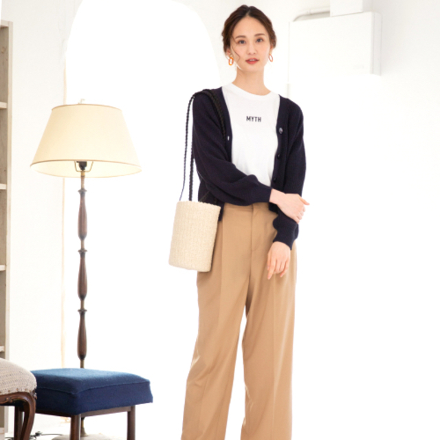 母業シーンでも活用期待!なニット素材のカーディガン。カーディガン¥12,100(オー・ゼロ・ユー/アドアーリンク カスタマーサービス)