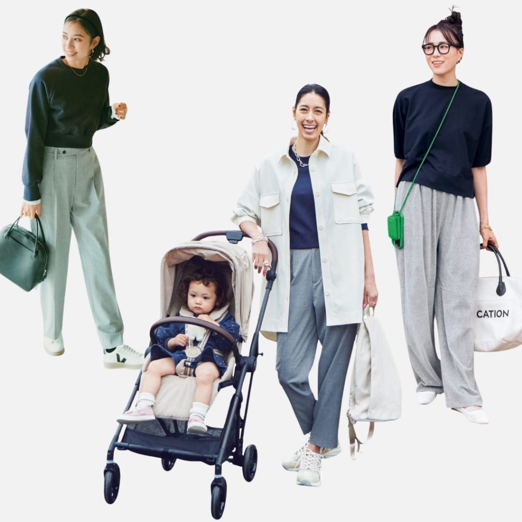 二学期のイベントといえば運動会。この時ばかりは、コンサバママも動きやすさ重視の服が必要です。黒やネイビー、白の定番カラーのなかにグレーを取り入れると、柔らかさや明るさが出て新鮮に。顔まわりの印象をいつもと変えない、パンツで挑戦するのが良さそうです。