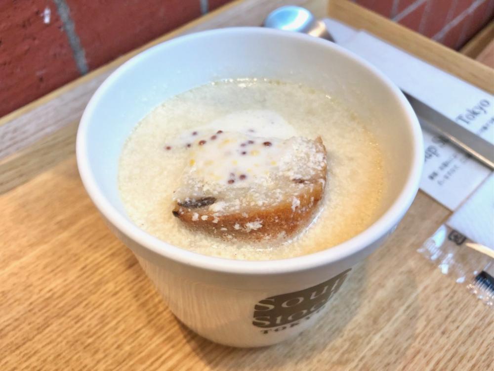 全体的にまろやかな味わいの中で、マスタードの酸味がさわやかさを加えています。シンプルそうに見えて、奥深い味わいのスープです。飲むというよりは食べるスープで、しっかりと食べ応えがあります。