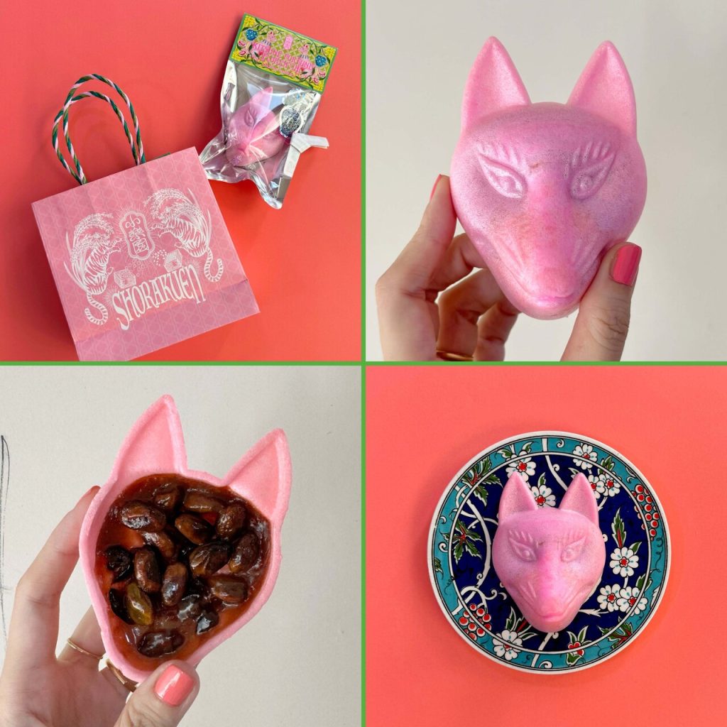 インパクトあるぴんくのきつねモチーフのフロランタンは