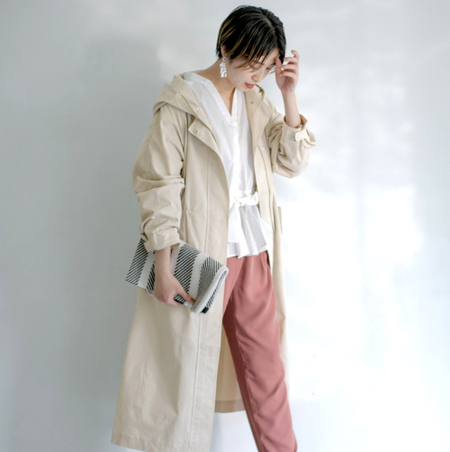 このニットはサラッとしていて薄手のため、インナーとしても着回せます。このニットを着てパーカを羽織れば、カジュアルスタイルが完成。ネイビーなら落ち着いた大人の雰囲気にまとまります。